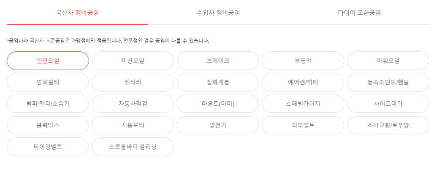 공임나라는 각기 다른 차량과 소모품에 따라 공임비가 다르기 때문에 공임나라 공임표를 미리 확인하는 것이 반드시 필요합니다. 예를 들어, 엔진오일 교환 공임비는 차량의 종류와 정비 난이도에 따라 14,000원에서 23,000원 사이에 책정될 수 있습니다. 공임나라 홈페이지에 접속해 차량별로 세부 항목을 확인할 수 있으며, 각 소모품 교체 시 소요되는 공임나라 공임표를 비교한 후 계획을 세울 수 있습니다.
