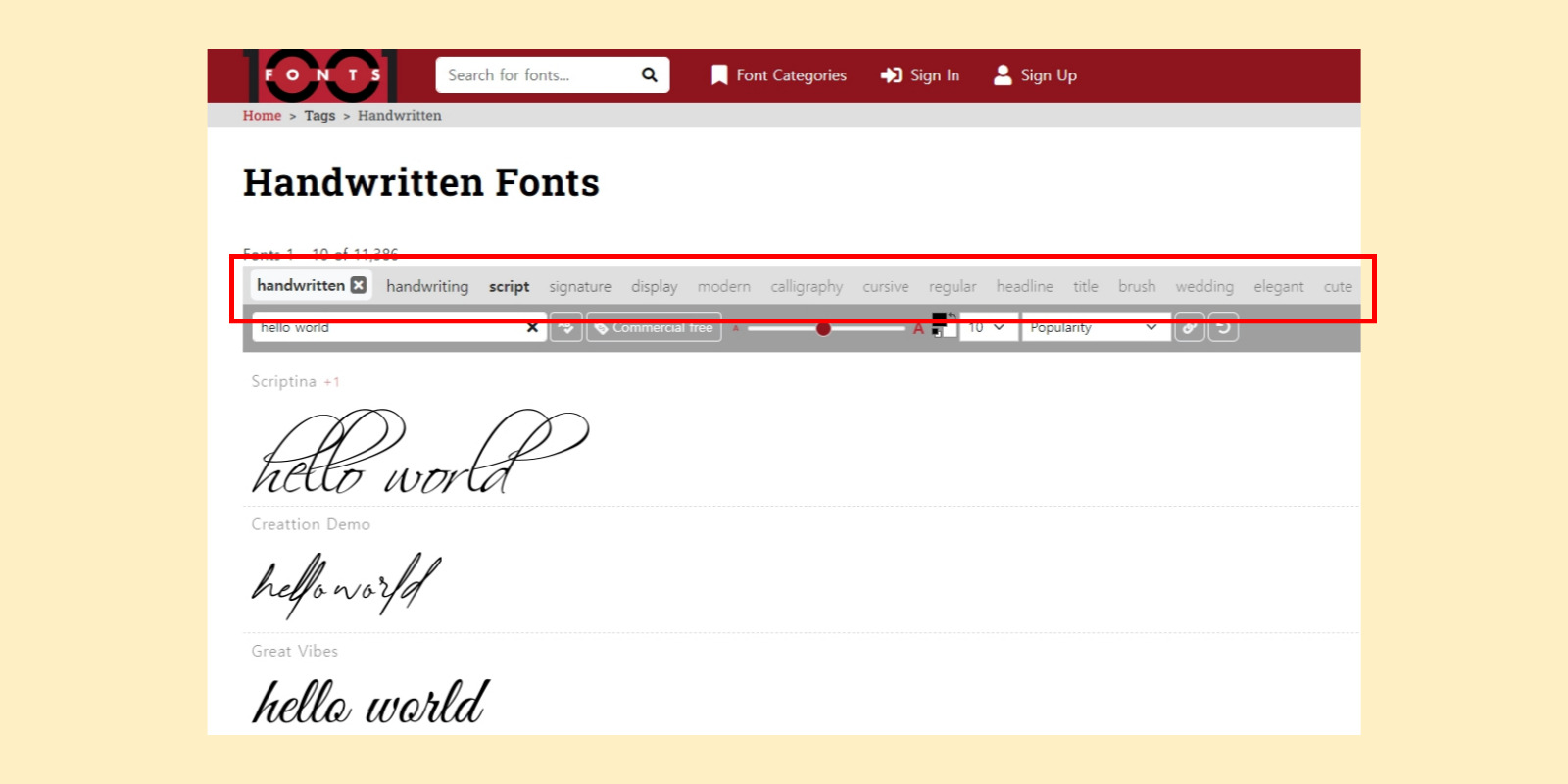 1. 링크를 클릭하여 1001 Fonts 사이트에 접속합니다.