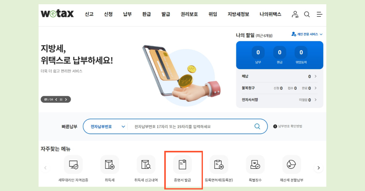 지방세 완납증명서 위택스 발급 방법
