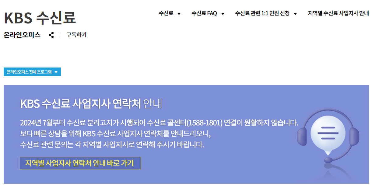 - 수신료 메뉴 클릭: 홈페이지의 우측 상단에 위치한 '수신료' 메뉴를 클릭합니다.