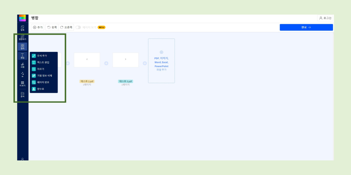 - PDF파일 합치기 선택: 첫 화면에서 'PDF파일 합치기' 기능을 클릭합니다.