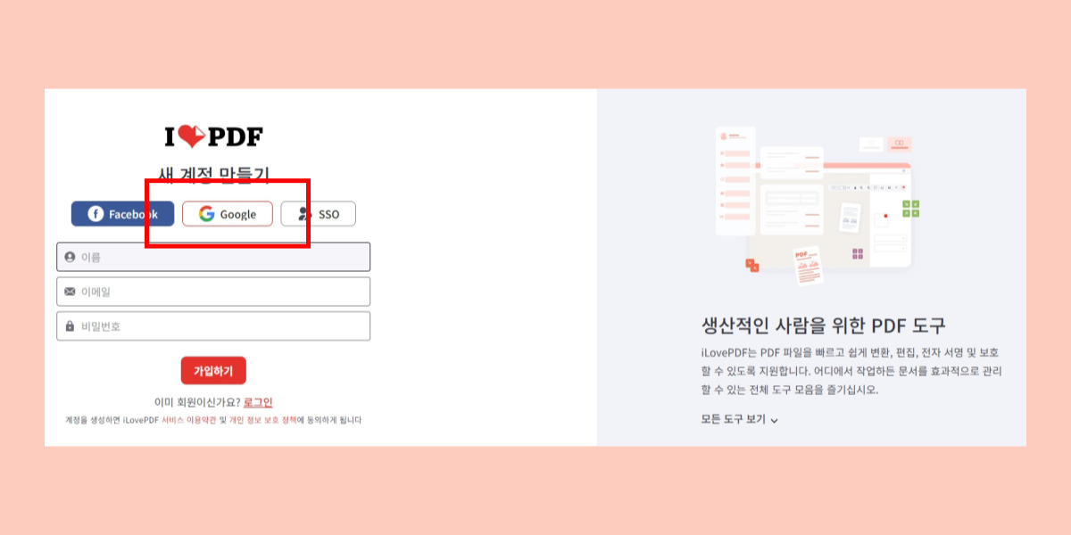 - 위 링크를 클릭하여 SmallPDF 웹사이트에 접속합니다.