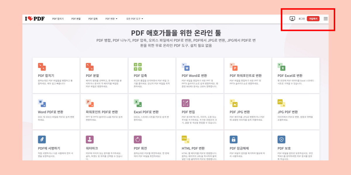 - 위 링크를 클릭하여 ILOVEPDF 웹사이트에 접속합니다.